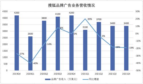 广告业务方面,尽管搜狐创始人、董事局主席兼首席执行官张朝阳表示,“2021年第四季度及全年,我们持续面临新冠疫情和宏观经济环境的不确定性带来的巨大挑战。在此情况下,我们积极推进技术优化及产品创新,不断提升运营效率,探索差异化的商业机会。第四季度,我们的广告收入超出指导性预期上限,并在2021年各季度及全年均实现盈利。”