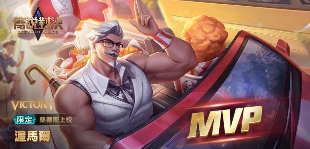 《AOV》也曾在中国台湾地区与肯德基展开一系列合作,为游戏内英雄Ormarr定制肯德基上校皮肤,在店内购买指定套餐就有机会获得这款皮肤,以及为英雄Raz定制泰拳皮肤等。