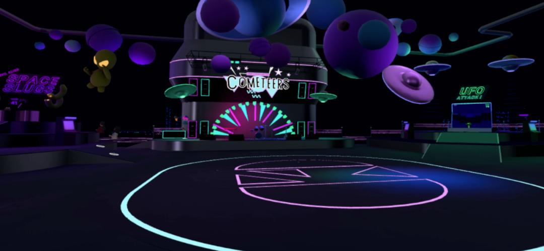 二是画风太过卡通、游戏设置太过低幼。要知道,硅星人对Horizon worlds所期待的画风可是《头号玩家》里的绿洲世界那样的,酷帅朋克、光怪陆离、未来感十足,各种游戏让你肾上腺素飙升。而反观目前的Horizon Worlds,先不说漂浮在空中的无腿人设定了,整个画风非常卡通,不会给你一种惊艳感。而游戏几乎就在投球和射击中循环,略显无聊。