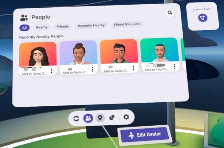 而为了避免你跟谁聊过忘了加好友之后找不到的情况出现,Horizon还贴心地在好友栏帮你进行了分类归纳,周围有那些人、在哪里遇到过谁、什么时候遇到的都一目了然,点击用户头像,你就可以给她/他发送信息或者发起语音聊天。