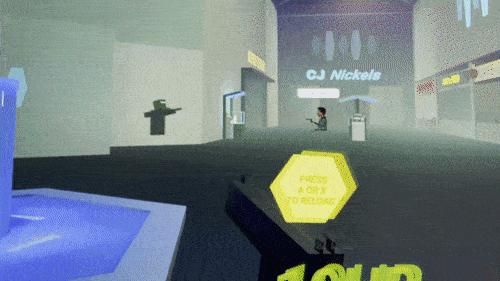 下一个,Retro Zombies,打僵尸游戏,就是在一个类似于商场的地方拿枪打四面八方来的僵尸,周而复始的上膛、射击,赢金币。硅星人个人感觉,这个游戏带来的VR真实感更强一点,有时候看到自己莫名其妙在掉血,一个转身才发现一个“僵尸”向你扑面而来。