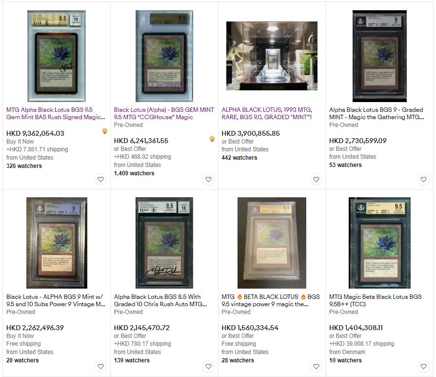 在不考虑错版、仅有一张的孤本(如著名的“1996 World Champion”)这类特殊情况,黑莲花就是TCG游戏的价格天花板,吊打万物,哪怕你全球限量几百张,哪怕你是金子做的。