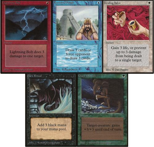 事实上,强度是万智牌单卡价格最核心的支撑因素,甚至超过了稀缺性。哪怕30年过去了,即使万智牌已经底层规则都有过数次改动,P9的单卡强度仍然是极其不合理的。举个例子,万智牌有五种颜色,而Alpha版本的五张牌定义了五种颜色的核心能力,是谓最初的颜色循环。其中蓝色单卡先祖召还的效果是一点蓝抓三张牌,而白色的对应单卡疗伤膏药则是一点白回三血。