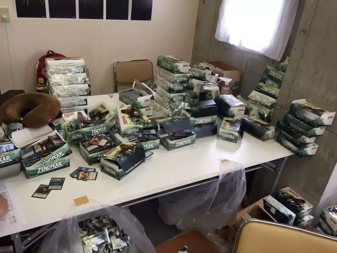 例如再战赞迪卡这个系列的宝藏卡(学名远探),就由于非常乐观的预期让我和我朋友特地跑到日本撕了——十箱。是的你没看错,十箱,一箱6盒,一盒36包,两三万张牌。
