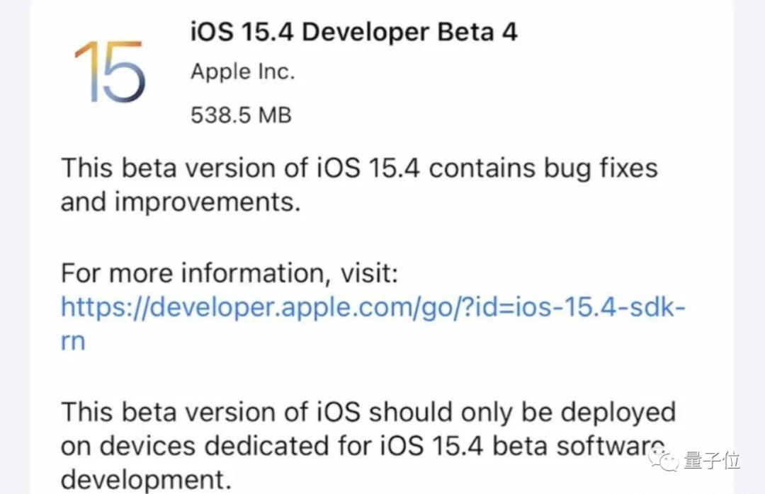 这次更新是23日凌晨发布的iOS 15.4 Beta 4,正式版还得再等几周。