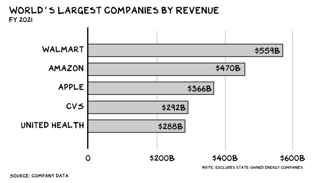 从1万亿,到2万亿,再到3万亿,虽然苹果成为股票市场的巨人,但在收入方面仍然落后于其他公司。