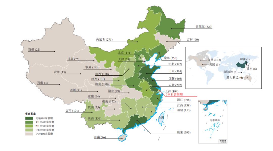 店比较多的一般是人口净流入,或者本身就是美食沙漠的地方。前者如广东,后者如河北。