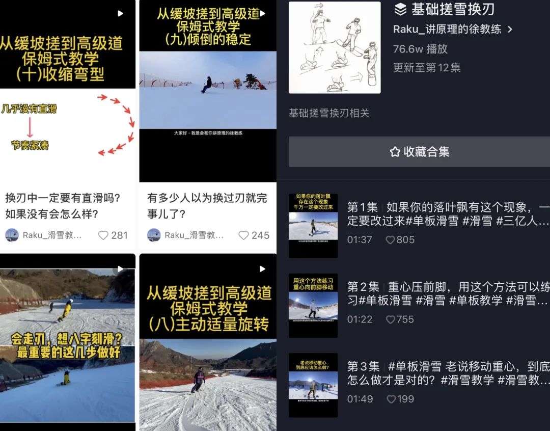 阿徐告诉极客公园,刚刚去不久,他就想离开,但是想到单干也需要积累客源,就多呆了一阵。第二年,他开始运营自己的小红书账号,发布一些教学内容,雪季中途,就离开雪场,成为一名独立教练。现在他还同时运营自己的抖音账号。