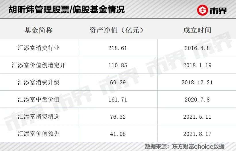 胡昕炜曾凭借投资消费行业闻名市场,并有着“复利健将”的美誉,至今在管基金规模已高达693亿元。