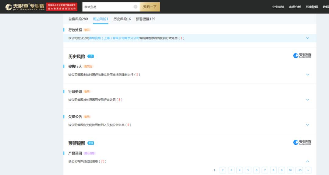 除此之外,在2010年9月,雅培还因旗下的一个生产车间可能存在甲虫污染,导致产品不符合质量标准,而被迫召回500万罐Similac品牌婴儿奶粉。2013年8月6日,据中国国家质检总局披露,雅培婴幼儿配方奶粉存在被肉毒杆菌污染的风险,要求雅培召回相关产品。而天眼查数据显示,雅培贸易(上海)有限公司产品召回更高达75项。