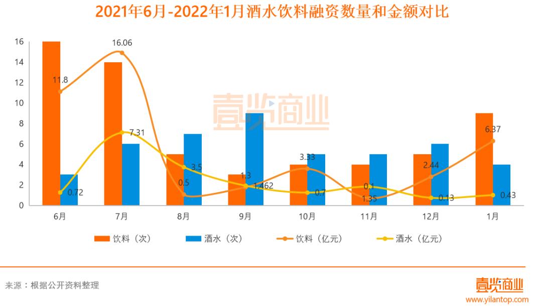 整体看来,比起前几个月,饮料和酒水领域的融资总数持续增加。但在1月,饮料领域的融资数量重新超越酒水领域,融资金额也大幅回暖。