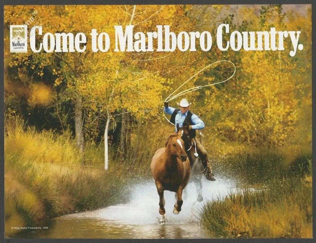 早在 1954 年香烟品牌 Marlboro 就开始使用这一手法,推出了经典的 Marlboro Man 系列广告。