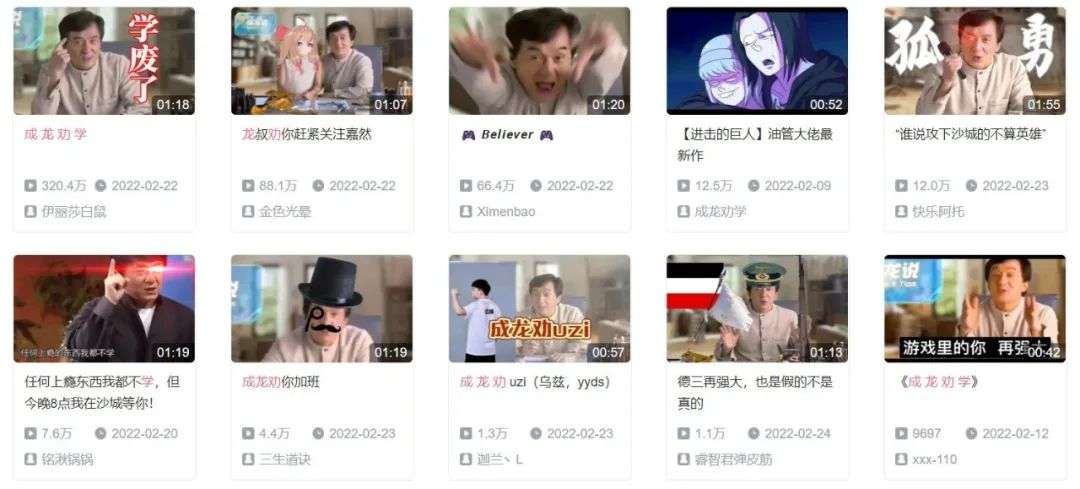 “成龙劝学”视频系列,让沉寂许久的B站鬼畜区重新又活跃了起来。在鬼畜“元老”伊丽莎白鼠的带领下,众多UP主参与创造,多个视频登上热门进入排行榜。
