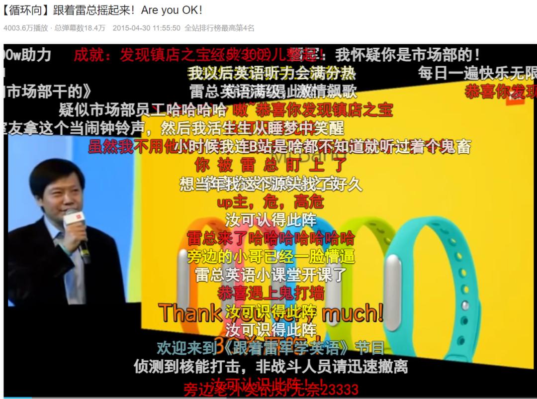 同年,雷军在印度的发布会上贡献了或许是中国人最具喜剧意味的英语演讲,也因此被当时还仅仅是一名学生的up主“Mr.lemon”瞄上,配以原曲《Angelina》的魔性音乐和雷军的蹩脚英语,该视频迅速火爆,仅在B站就收获4000万播放量。而该视频的影响力也在继续,雷军随后入驻B站乃至发布会展示手机,均多次使用这首歌曲。