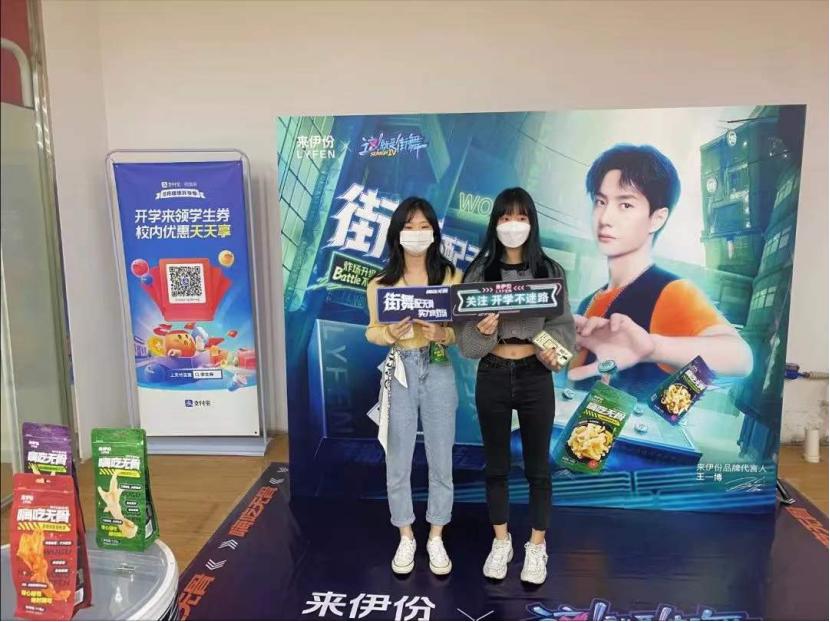 以经典国货品牌来伊份与《这!就是街舞4》的合作为例,品牌一方面深度绑定“一波王炸”战队,通过节目与微博、抖音、小红书等社交场的裂变,构建“鲜潮”形象初步感知;另一方面,通过优酷撬动阿里生态的校园资源,在全国六地线下校园天猫店发起来伊份校园街舞快闪活动,并通过天猫校园社群运营、线下游戏互动、派样试吃等方式完成品牌与用户的深度沟通,让来伊份“潮鲜态度”深入Z世代人群。据统计,此次天猫校园主题快闪累计覆盖超13万人次。