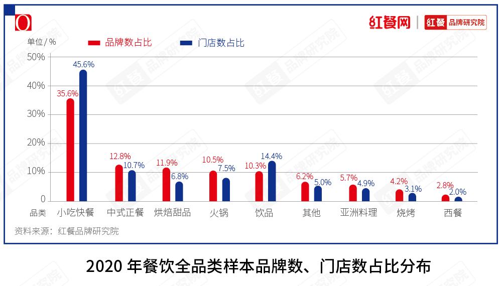 红餐品牌研究院的数据显示,2021年,西餐在整个餐饮大盘中的门店数和品牌数占比,相比2020年又有不同程度的下滑。