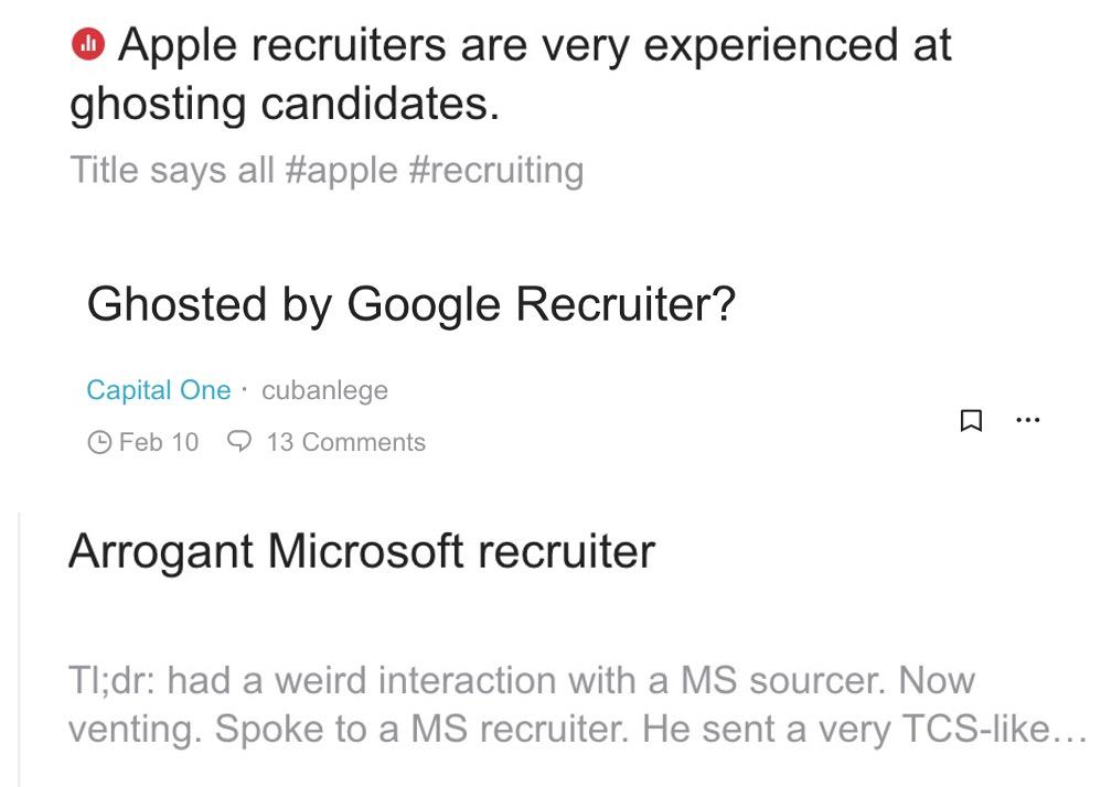 而这样被“Ghosted”的情况,就经常出现在苹果、谷歌、微软之类的公司猎头上。