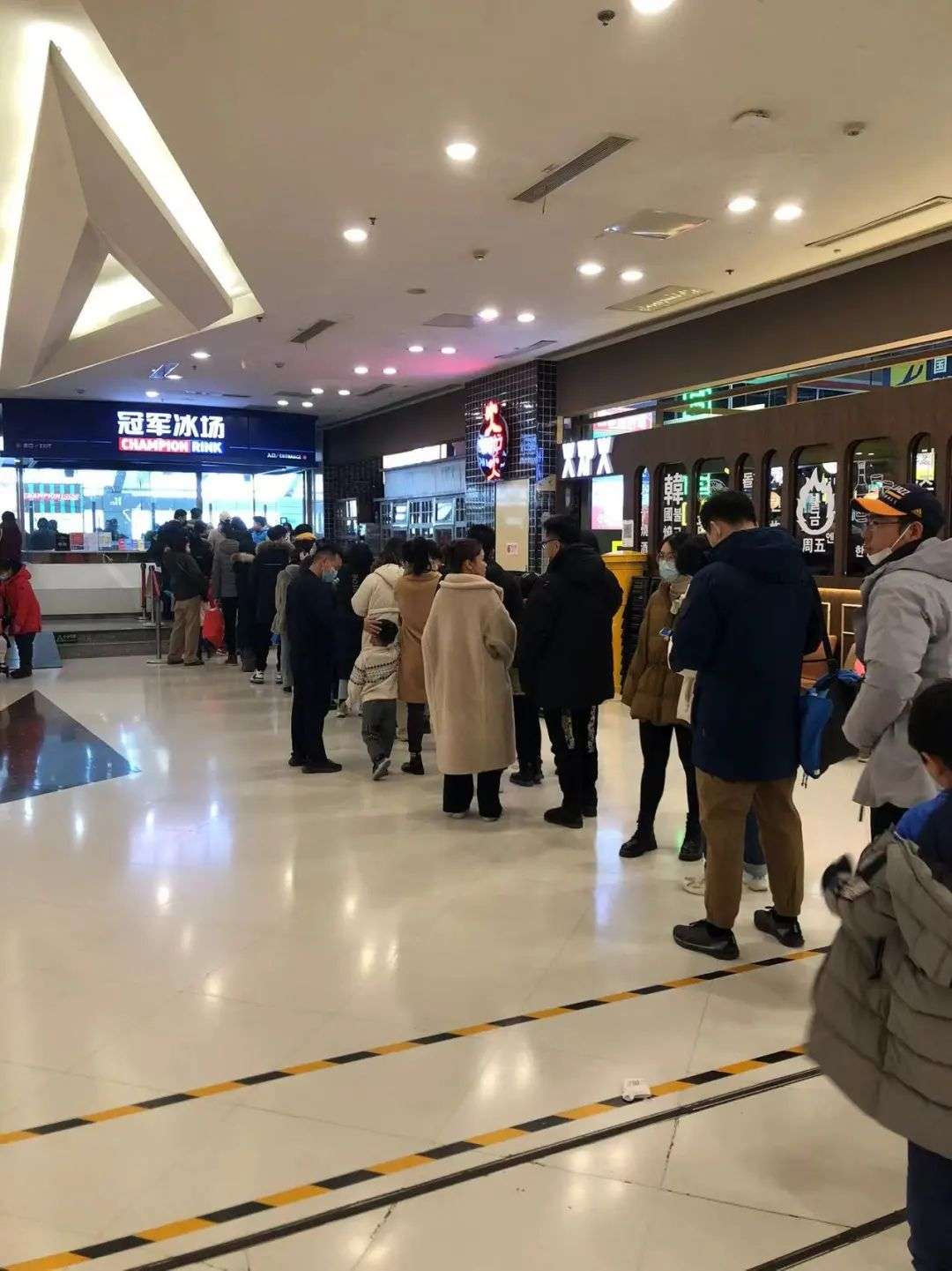 北京冬奥会闭幕当天,正是寒假最后一个周日。下午两点,朝阳大悦城冠军冰场外,等待候场的散冰顾客排了十几米。一扇玻璃门将冰场和商场的美食区隔开,门内白炽灯将冰场照得澄亮,气温仅零下三度,气氛却很热烈。