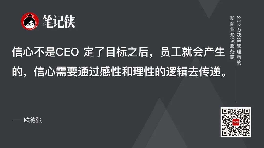 信心不是CEO 定了目标之后,员工就会产生的,信心需要通过感性和理性的逻辑去传递。