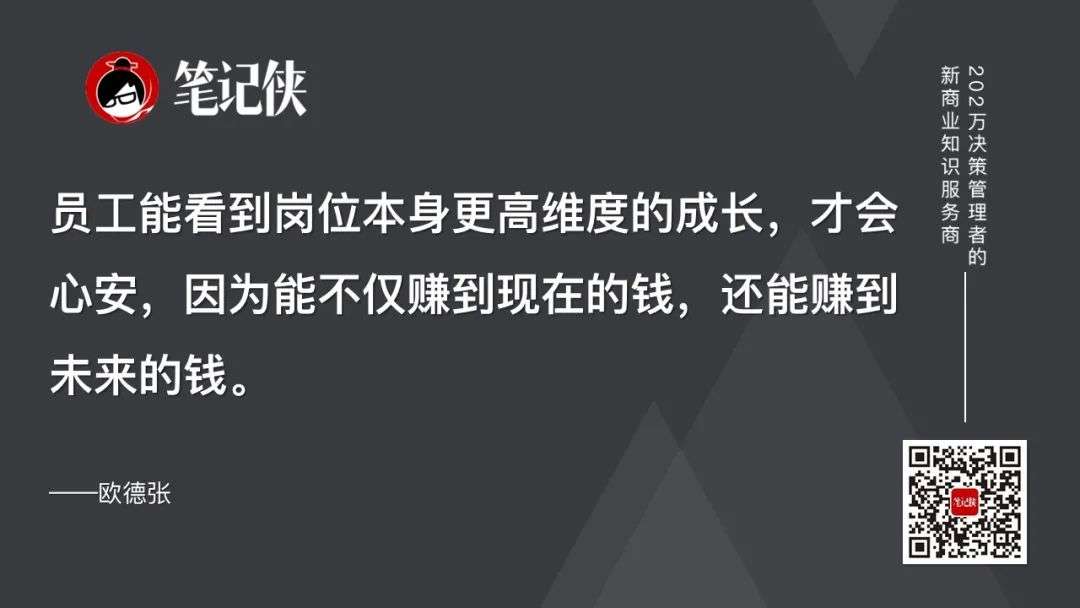 员工能看到岗位本身更高维度的成长,才会心安,因为能不仅赚到现在的钱,还能赚到未来的钱。