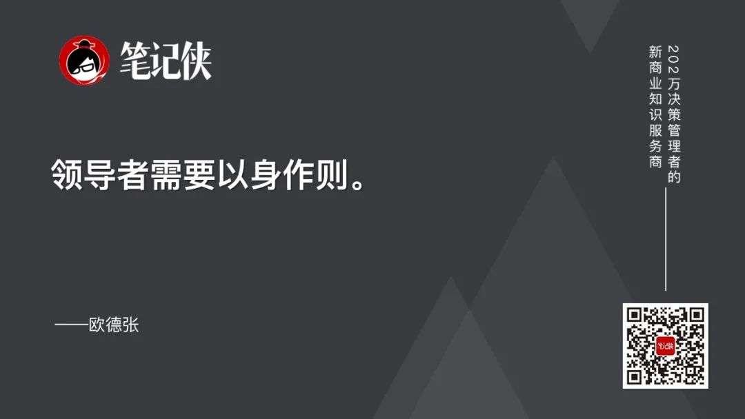 在当下这个外部变化多端的时代,领导者更应以身作则,保持好的状态和信心——老大一天的断线会导致下属三天的懈怠。