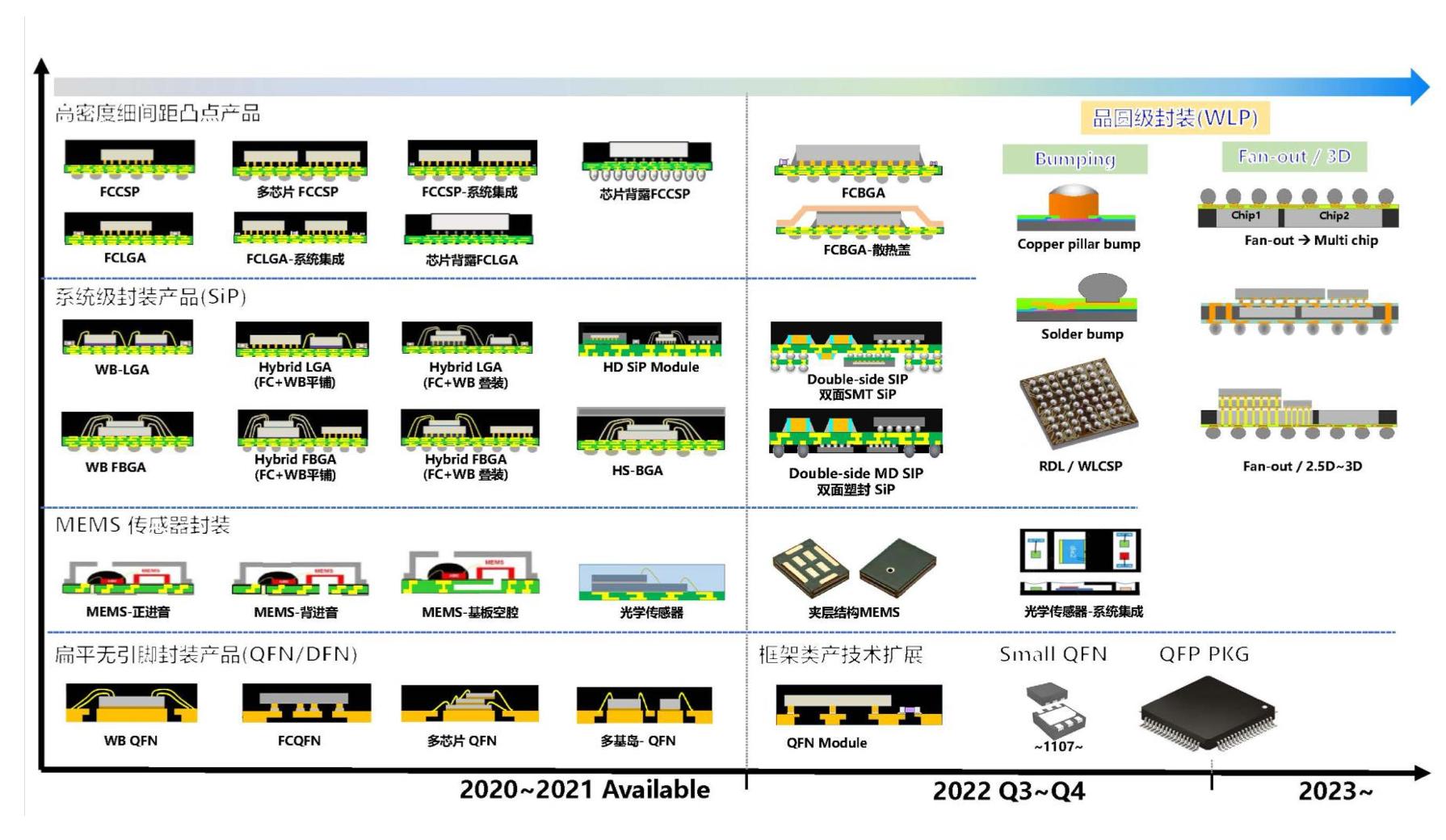 甬矽电子的主要产品路线图(来源:甬矽电子招股书)