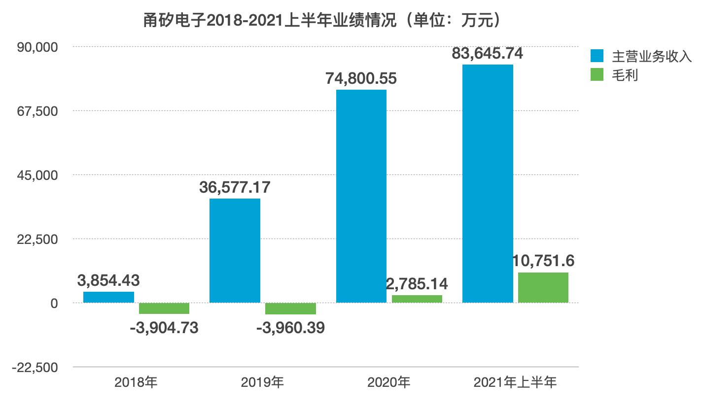 具体来看,2018年至2021年上半年,甬矽电子的营收分别约0.39亿元、3.66亿元、7.48亿元、8.36亿元,净利润分别约-0.39亿元、-0.4亿元、0.28亿元、1.08亿元。