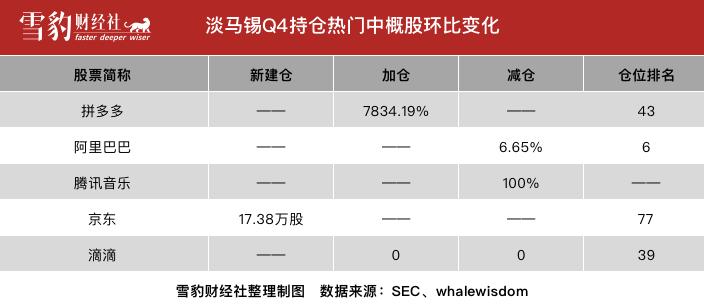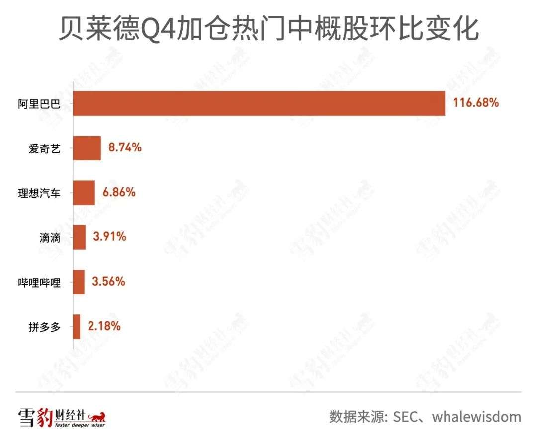 Daily Journal去年Q4加仓30万股阿里巴巴股票,仓位由19.86%升至27.65%,仍是其第三大重仓股。该公司去年Q1首次持仓16.53万股阿里巴巴股票,并在Q3加仓13.67万股。