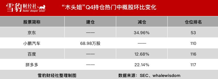 “木头姐”凯西·伍德旗下方舟投资Q4持仓368只美股,持仓总市值330.8亿美元,环比下滑20.56%。