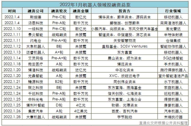 资本市场的态度,无疑是判断一个行业的最佳视角。不完全统计,2021年服务机器人赛道相关融资事件为113起,融资金额超440亿元,仅在2022年1月,机器人行业至少发生18起融资事件。