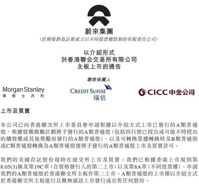 最前线|蔚来申请在港上市,计划3月10日挂牌交易