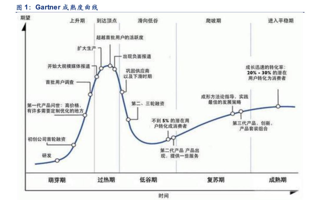 从Gartner技术成熟度曲线图来看,“元宇宙”似乎正在从过度期待的“神坛”上走下来,开始走向平稳发展的阶段。也就是说,并非“元宇宙”开始崩盘,而是人们进一步认识到现实与“元宇宙”之间的差距,从现实层面来逐步解决通向未来可能会遇到的一些难题。
