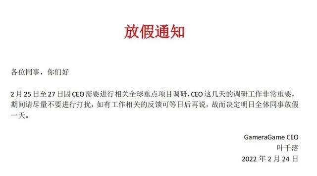 除了销量,“老头环”的影响力在互联网上的反馈则更加具体。游戏发布当日,《创世理想乡》的游戏开发商PocketPair发布公告,将为所有员工提供《艾尔登法环》假期,员工可以连休 4 天。开发《喵斯快跑》的国内游戏公司PeroPeroGames也获得了一天的“法环假”,游戏发行商GameraGame的CEO宣布自己要去“研究全球重点项目”,所以全公司放假一天。