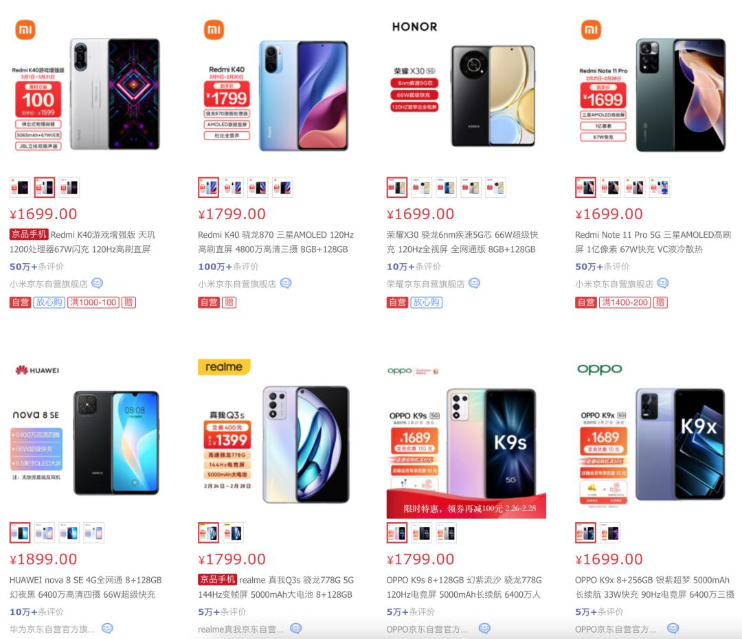 说了这么多,倘若iPhone SE 2真的降到1500元上下,它面对同价位的竞品是否有巨大优势呢?以京东目前在售机型为例,在1500元到2000元价位段中,销量前十的手机中只有Redmi K40搭载了骁龙8系处理器,剩余几款在性能方面没法与A13正面硬刚。