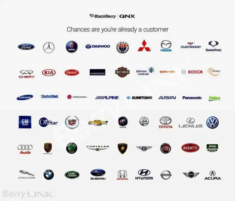 搭载QNX系统的品牌,没想到有这么多吧 图片来源BerryLINK