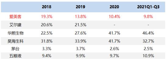 而相对销售费用,公司收入的增长更为快速,销售费用率在2018-2021Q3间下降了近9.5个百分点,体现出了较强的费用管控能力。