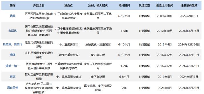 图七:爱美客的获证产品及相关信息 数据来源:36氪整理