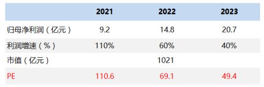 因此,基于目前的市值测算,保守假设公司未来的业绩增速低于现值,且逐年走低。可以看到,2022年当利润基数开始起量,届时公司将开始具备大幅消化估值的能力,这与wind一致预期所反映的趋势相同。