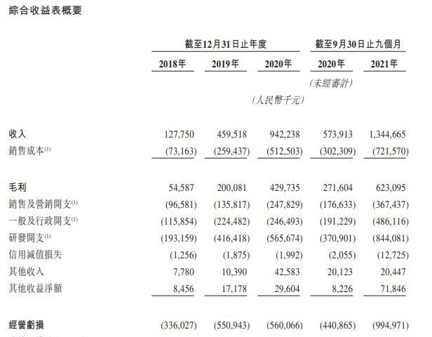 招股书显示,2018、2019年、2020年以及截至2020年及2021年9月30日止9个月,第四范式收入分别为约1.28亿元、4.60亿元、9.42亿元、5.74亿元、13.45亿元。