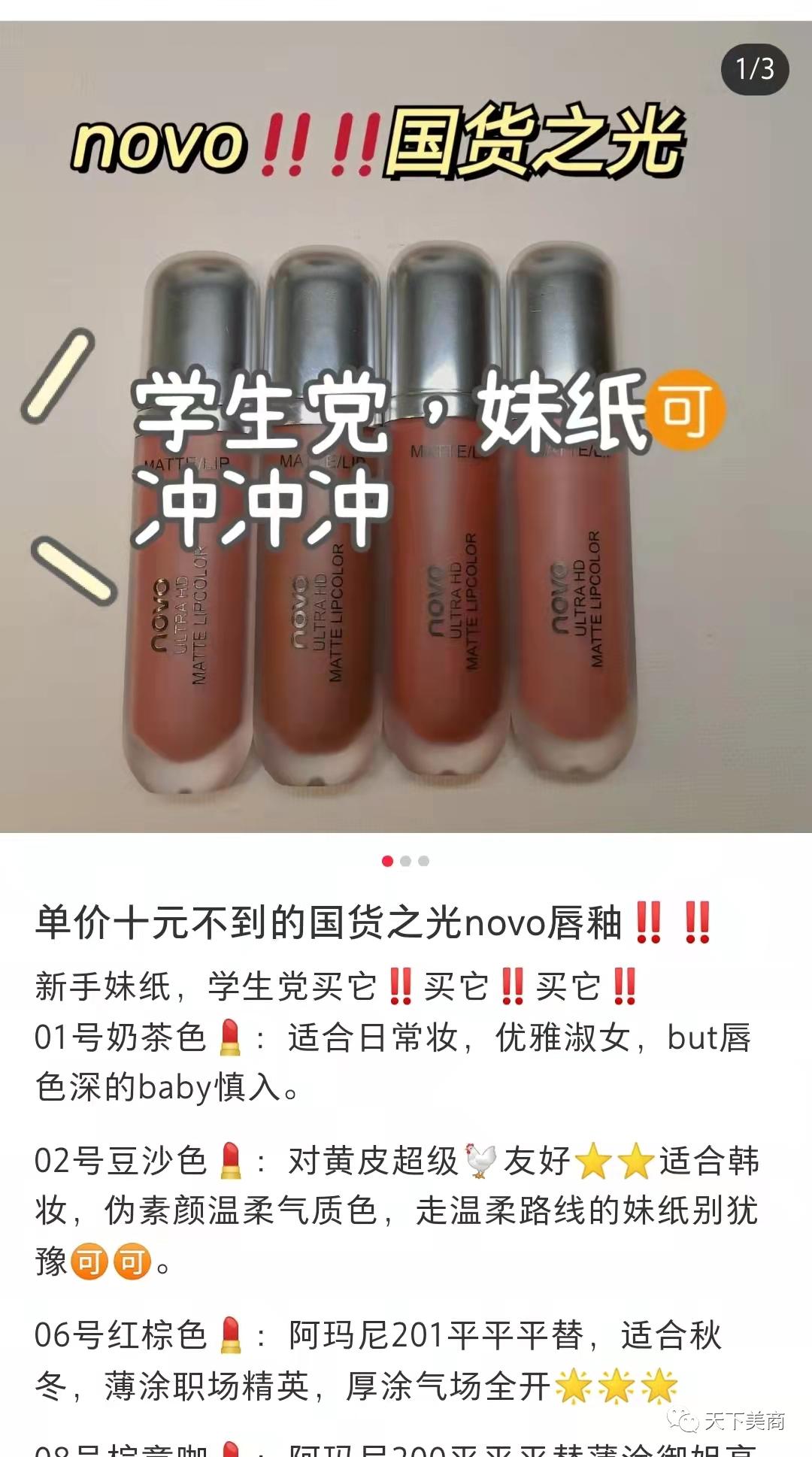 他们的价格往往比原品牌低出十倍不止,而去购买如此低价的产品的消费人群,往往都是对美妆产品认知过少或经济条件较差人群。医美查数据显示,novo品牌的绝大部分粉丝年龄层在6到24岁。这个年龄段的群体,大部分还未踏入社会,对品牌的认知度不高、可支配的零花钱也不多,但却有化妆需求,才在一知半解之下,选择购买了该品牌的产品。