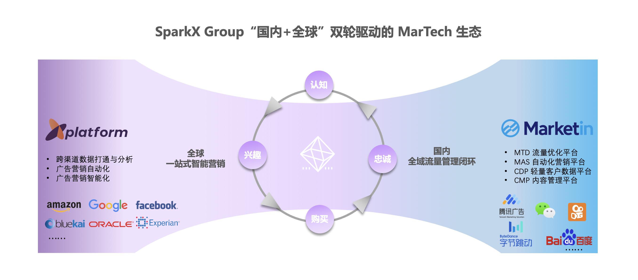 因此,在谈到对Marketin的并购考量时,SparkX Group 创始人袁俊坦言,经过3年多的发展,SparkX Domestic在中国国内全案整合营销策略的制定、数据的洞察及智能分析、广告的一站式投放管理等方面都积累了丰富的经验,并且构建了SparkX Databank、SparkX Platform等多个平台。而Marketin作为中国营销自动化领域头部技术公司,在智能广告投放、自动化营销、私域用户的精细化运营以及营销配套服务等基础设施层面,均拥有成熟的技术沉淀,能够与SparkX Domestic的业务高度契合和协同,从而加速集团在MarTech赛道的发力。