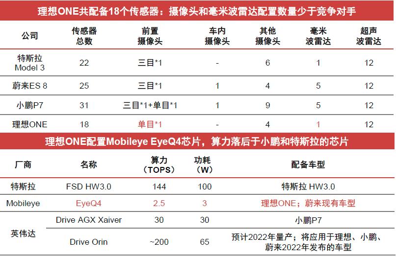 Mobileye Q4芯片的算力是2.5 TOPS,蔚来的三款量产车型ES8、ES6、EC6,小鹏的第一款车G3,以及改款之前的理想ONE,都是用的这款芯片。