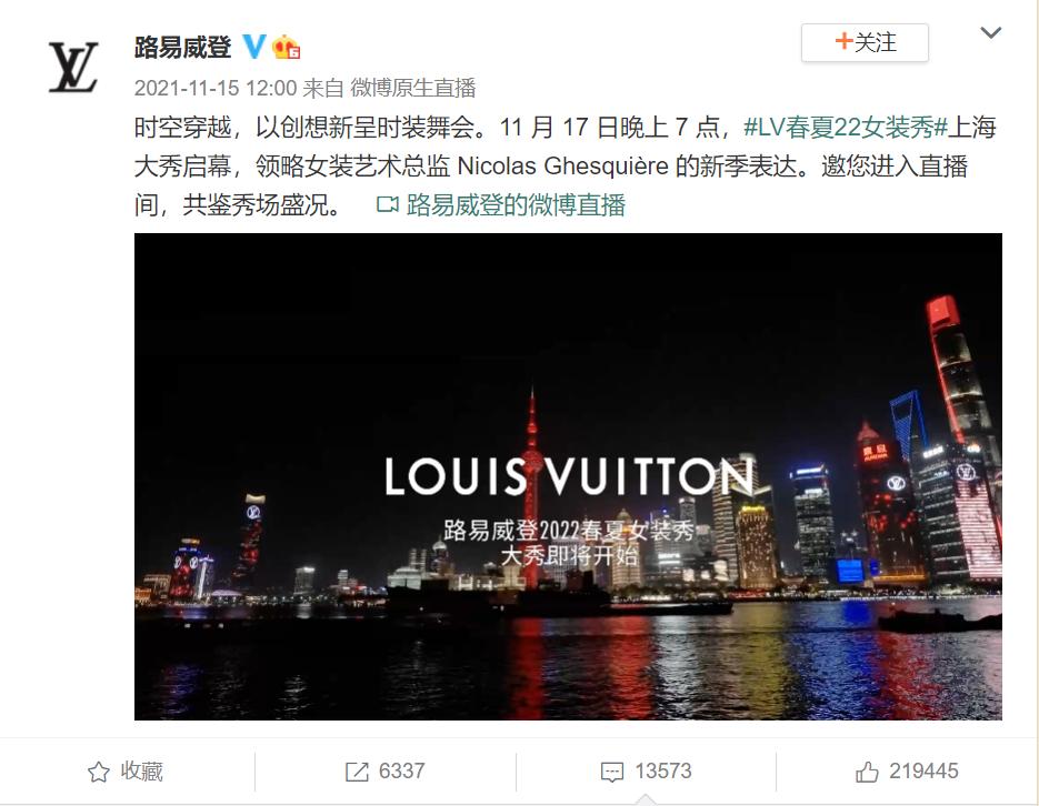 比如在中国市场尝试直播的先锋Louis Vuitton(路易威登)。去年6月,路易威登2022春夏男装秀亮相快手。截至当晚12点,快手平台观看此次直播的在线观看人数达1300万,最终观看人数达3864万。11月,路易威登不仅将不久前在巴黎上演的2022春夏女装秀搬到上海进行重新演绎,还在秀场上释出了19套专门为中国市场设计的全新Look,并且采用了微博、微信视频号、腾讯视频、抖音、快手、小米电视 OTT等多平台的同步直播,直播观看数量累计达到1.58亿次。