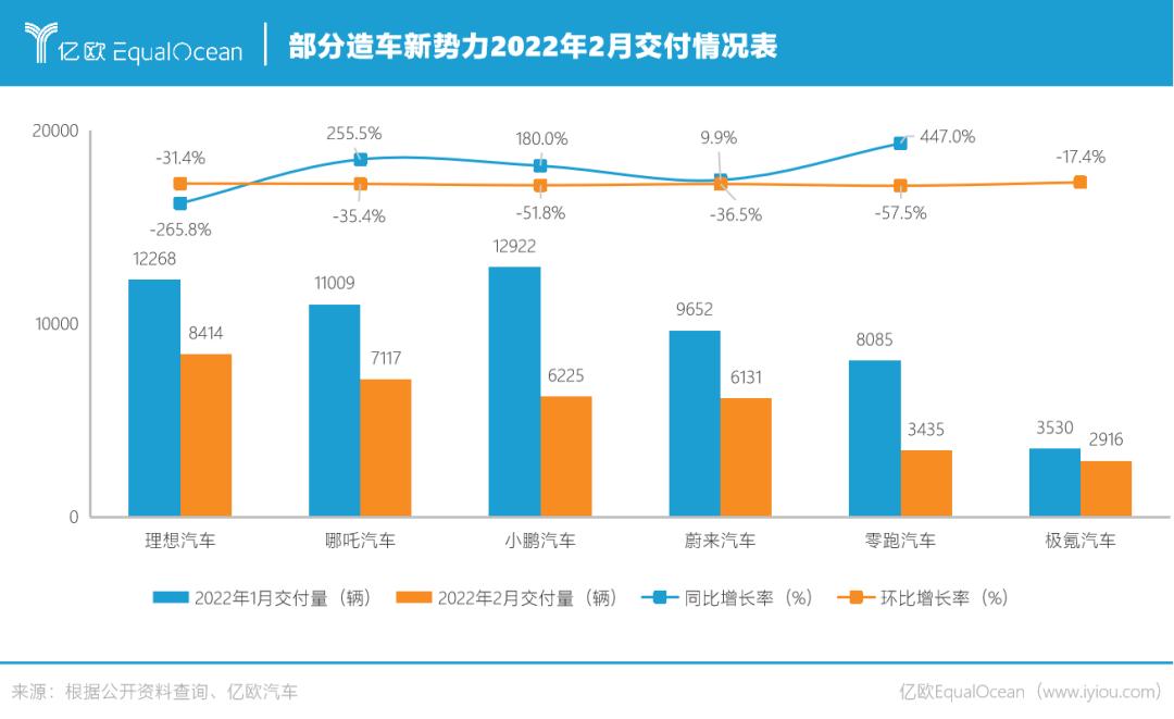 在3月的第1天,造车新势力纷纷晒出了2月的成绩单。