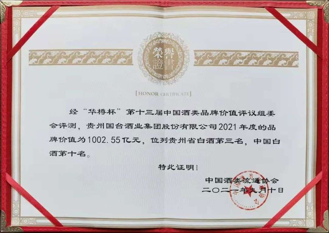 20多年的经营,业内对国台是信心满满,国台位于茅台镇中国酱酒核心产区,被政府授牌为茅台镇第二大酿酒企业,也是贵州白酒第三大品牌(茅台、习酒、国台),中国酱酒第四大品牌(茅台、郎酒、习酒、国台),2021年国台品牌价值突破千亿,进入中国酒业十强。