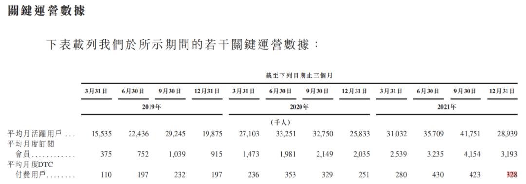 Keep平均月度订阅会员数从2019年的80万增加到2020年的190万,再到2021年的330万,涨了3倍以上。会员渗透率由2020年的6.4%增长至2021年的9.5%。平均月活跃用户数(MAU)从2020年的2970万增加至2021年的3440万,其中,2021年三季度MAU达到了4175万,创下新高。