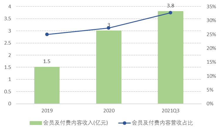 2021年前三季度,会员订阅及线上付费内容实现营收3.8亿元,同比增长超过50%,占总营收的33%。2020年,这部分收入的同比增长则超过一倍。