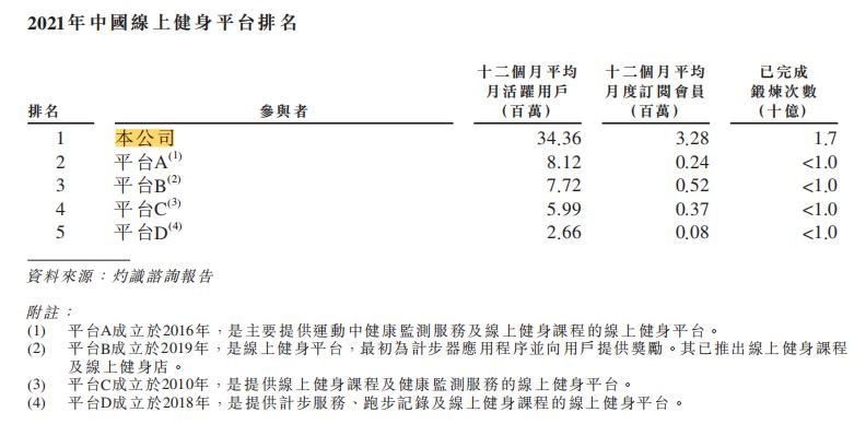 据灼识咨询报告,截至2021年12月31日,按累计商品交易总量计,Keep是中国最大的瑜伽垫品牌(市场份额14.9%),Keep智能单车的累计销量排名中国第一。在Keep App商城中,售价2399-2899元的跑步机,月销量208台;售价239元的智能手环,月销量7749只。