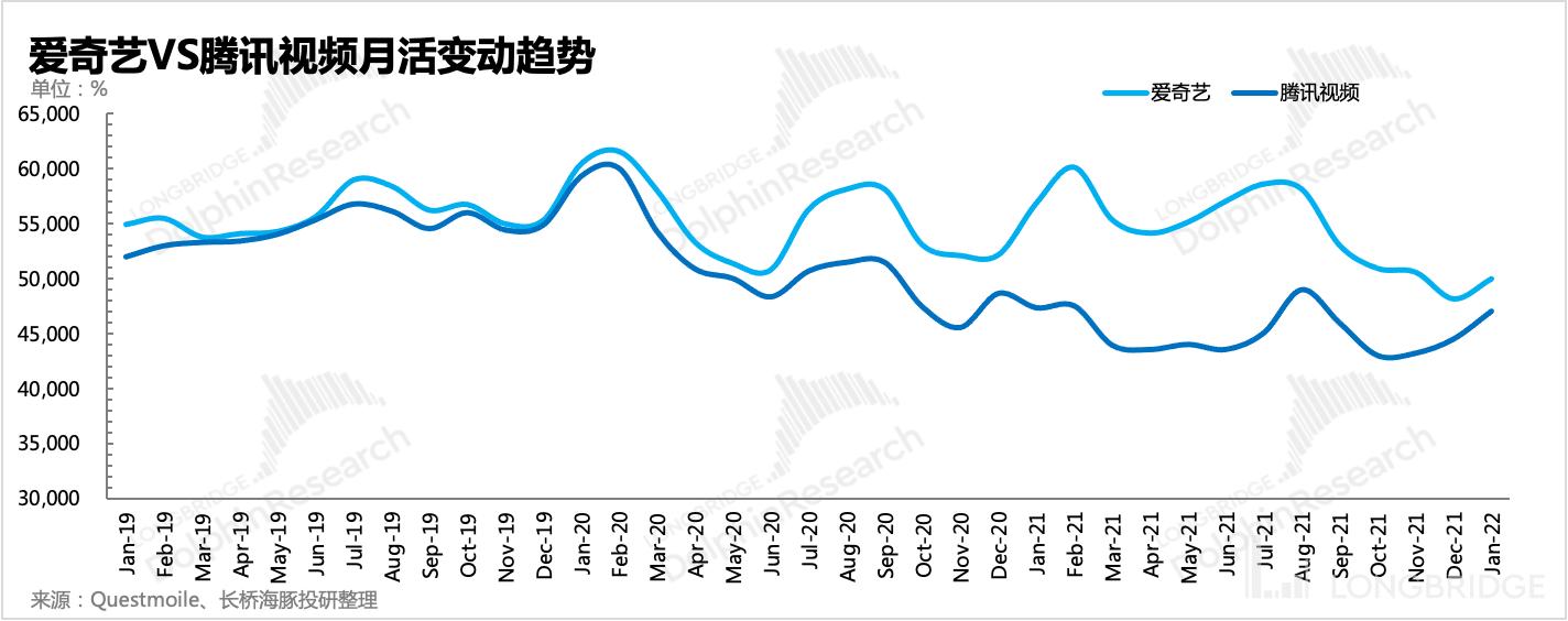 从结果来看数据无疑是差的,但差生不是爱奇艺一个人在做,老二腾讯视频在四季度用户也在持续流失。