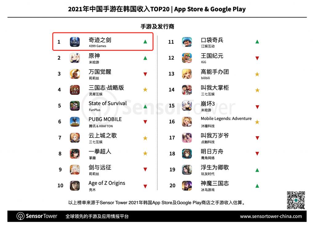 2021出海韩国:《奇迹之剑》收入第一,超越《原神》